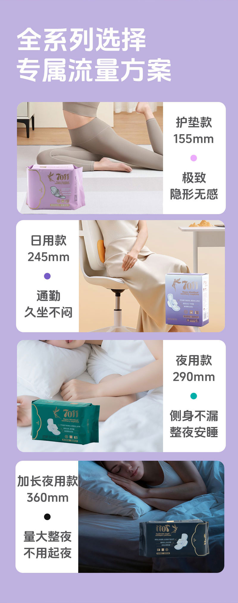 7011纳米新概念卫生日夜守护组合 超薄亲肤 透气干爽 清新舒爽体验